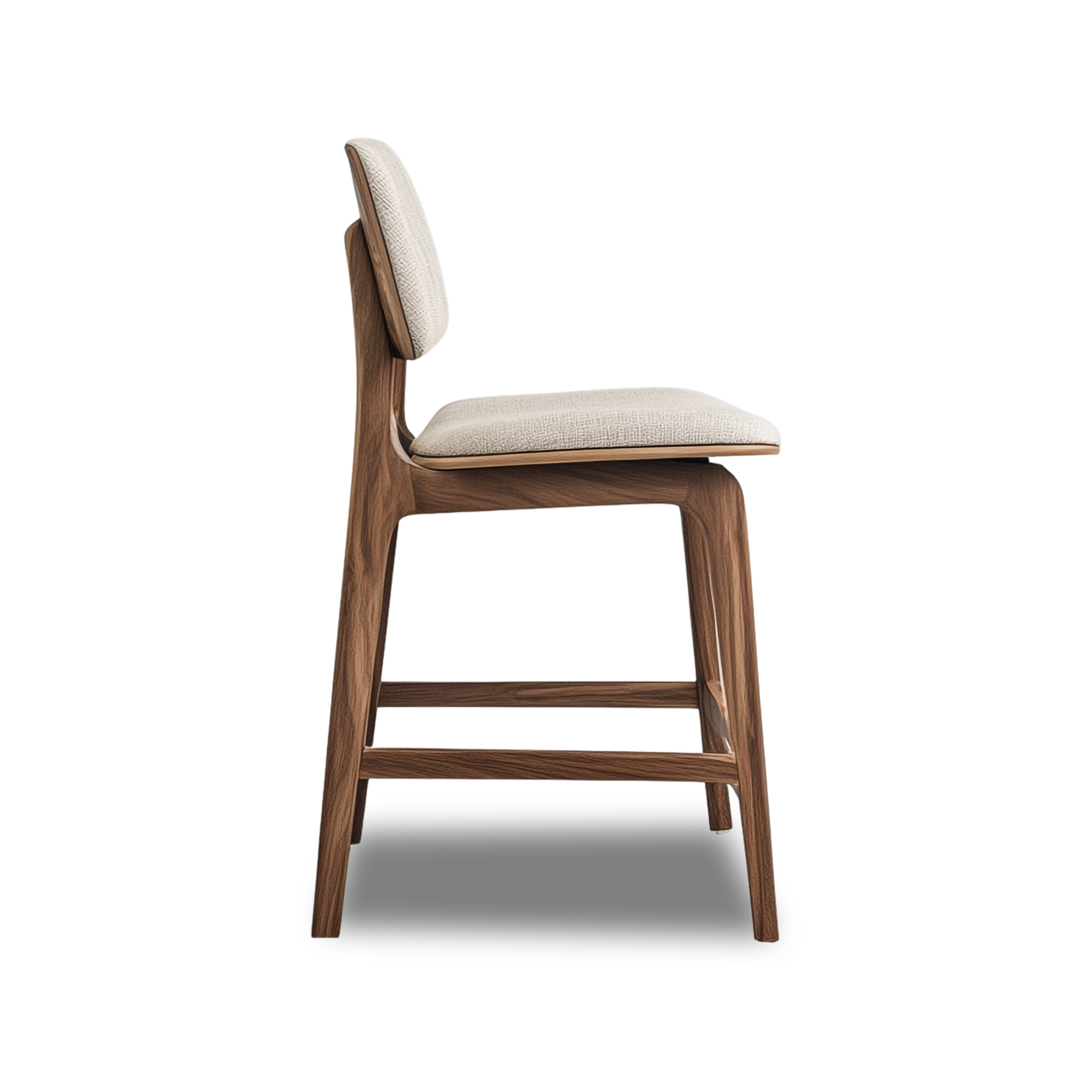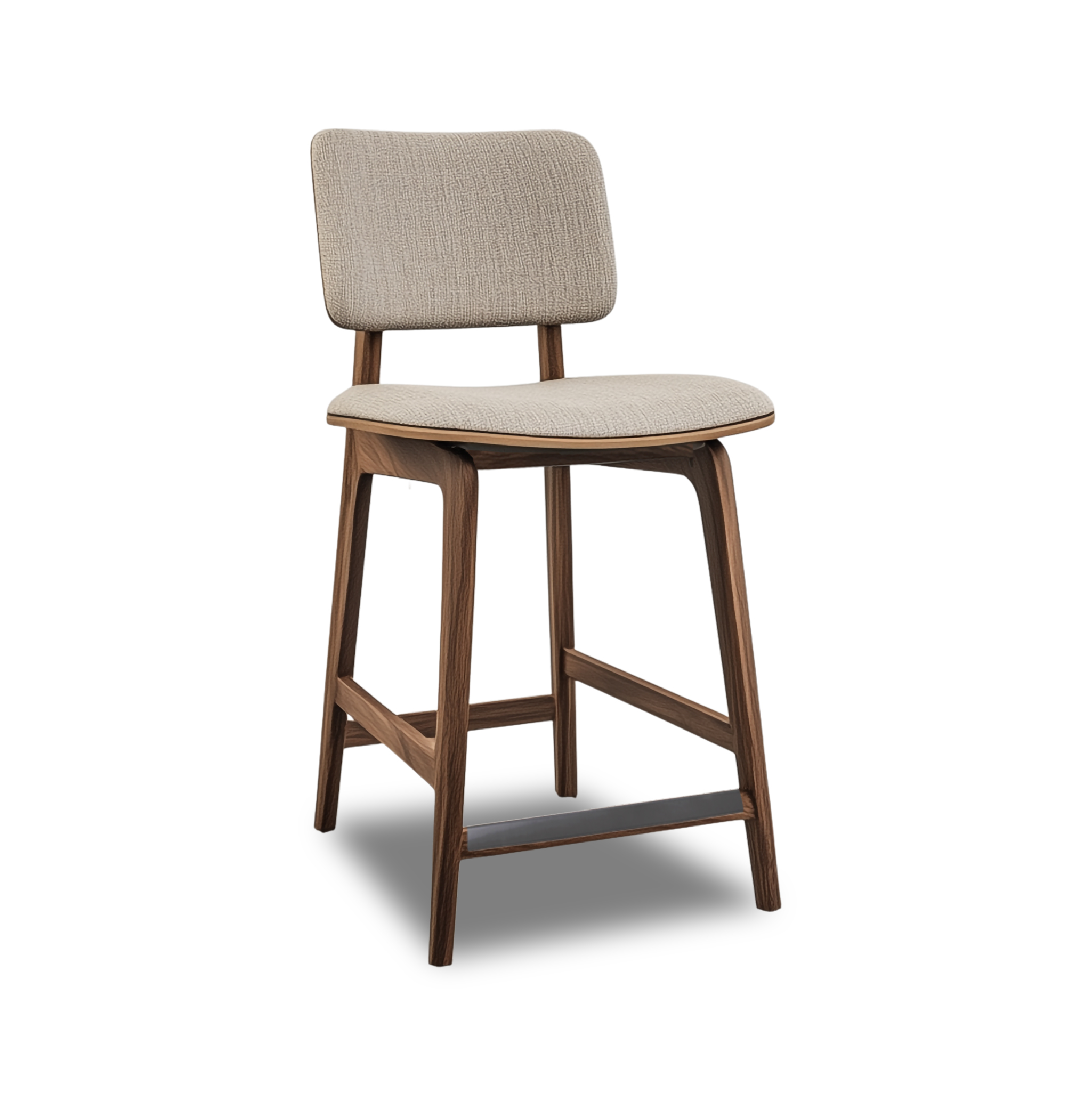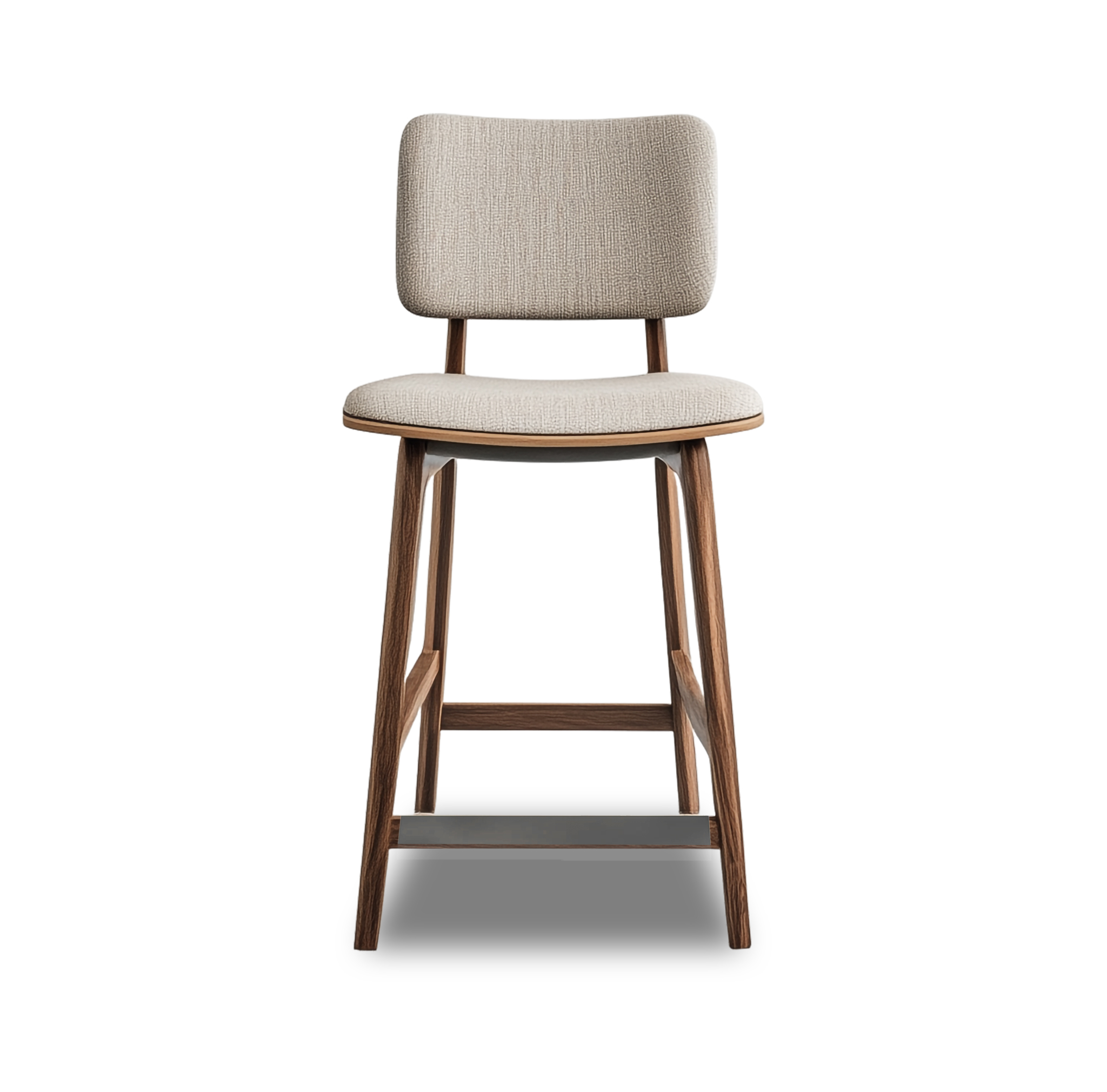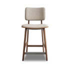 - Tightly upholstered counter stool with wood base and stretchers