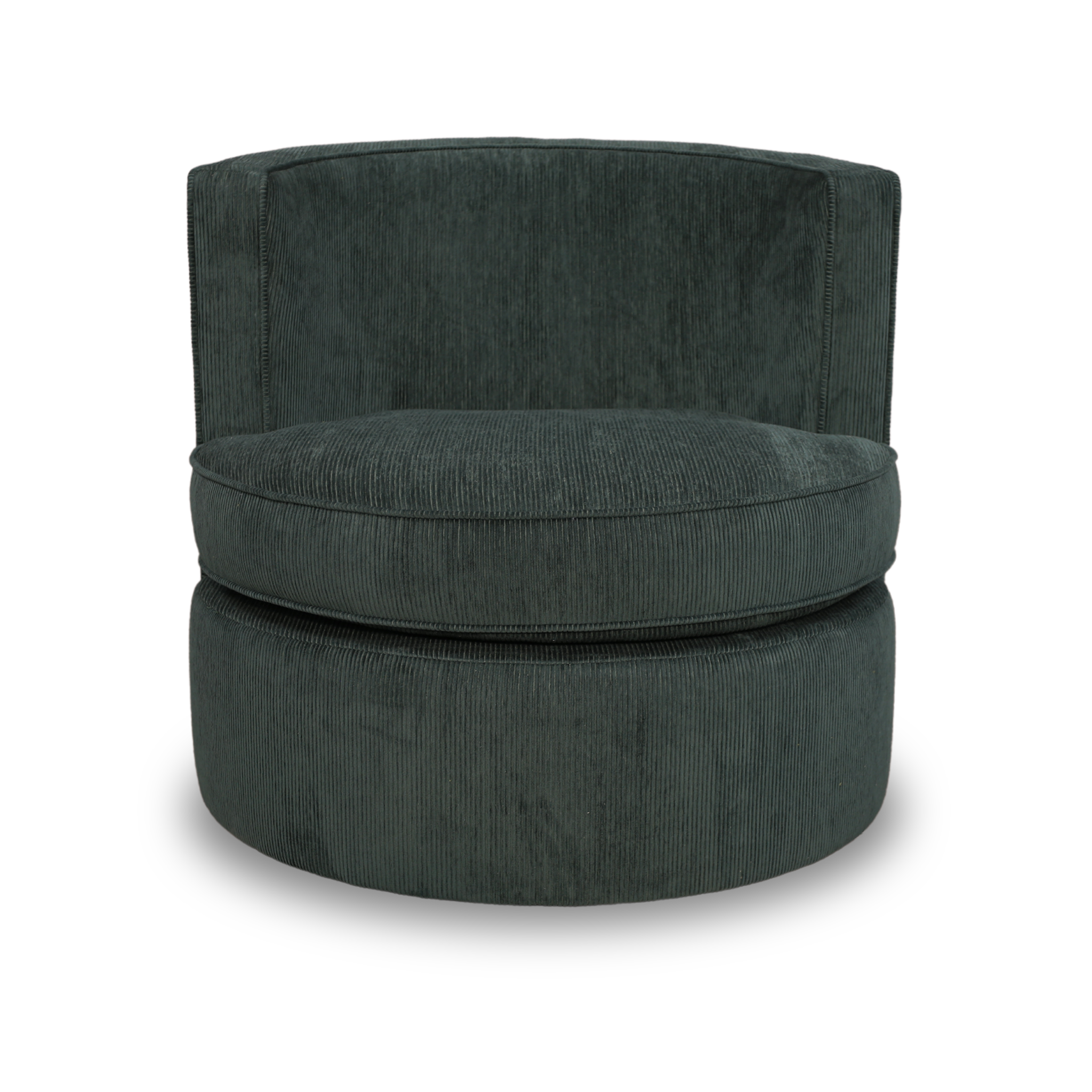 - Tightly upholstered curved back with self welt and loose, reversible box seat cushion with self-welt