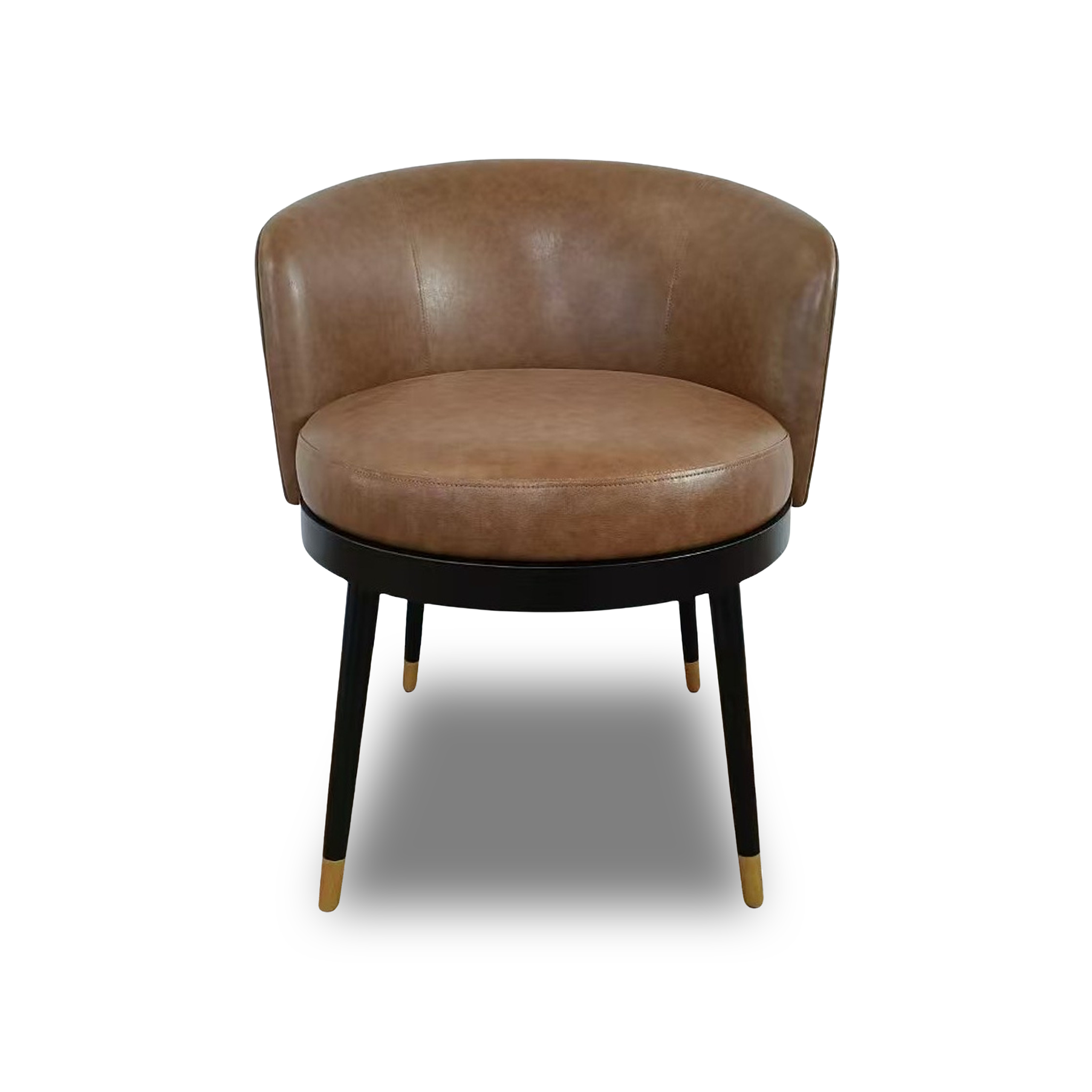 - Tightly upholstered curvilinear back and seat with top stitching detail
