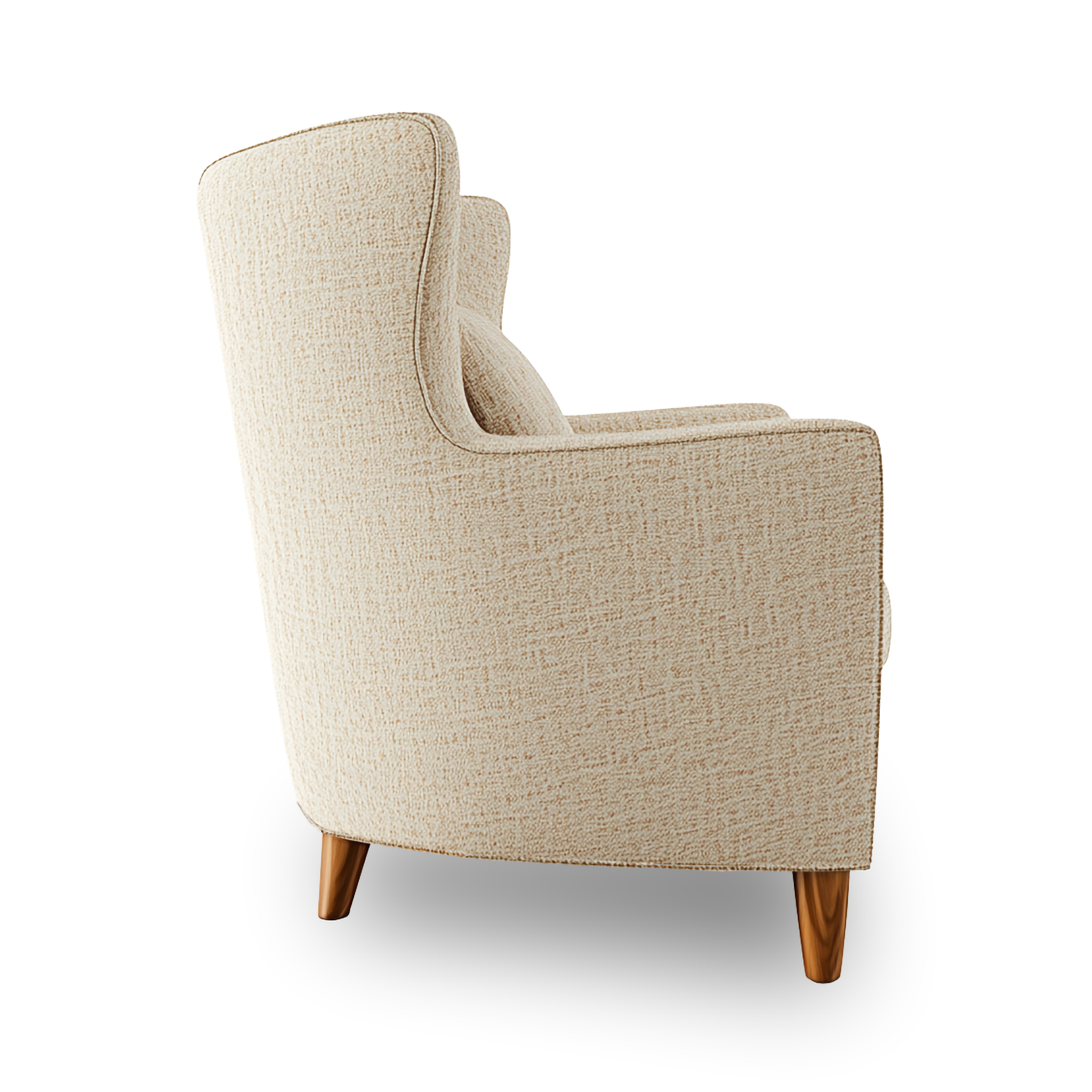 - Tightly upholstered wing back frame with perimeter self-welt details