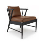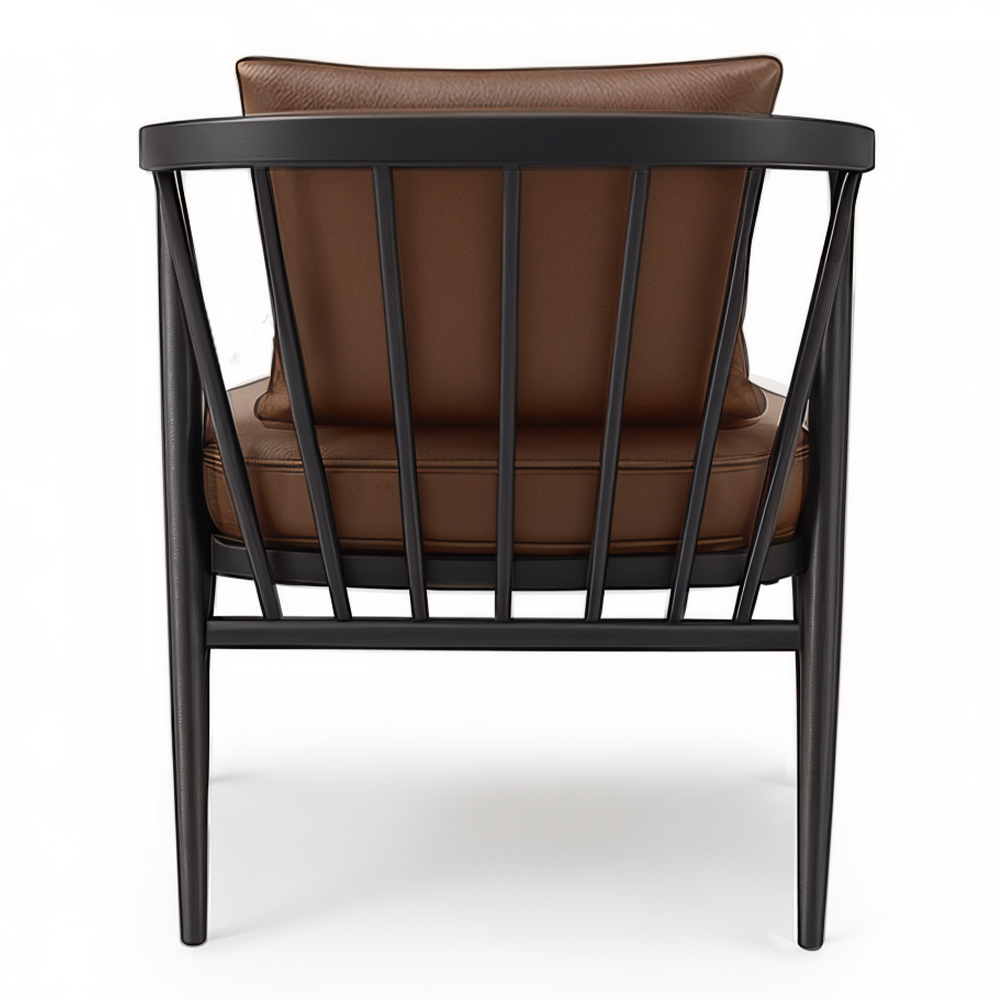 - Loose pillow back cushion tied to wood frame with leather strap