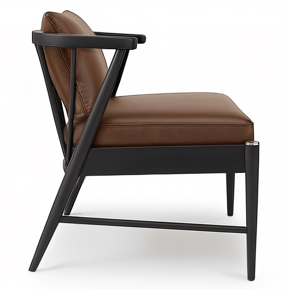 - Exposed wood frame with side stretchers